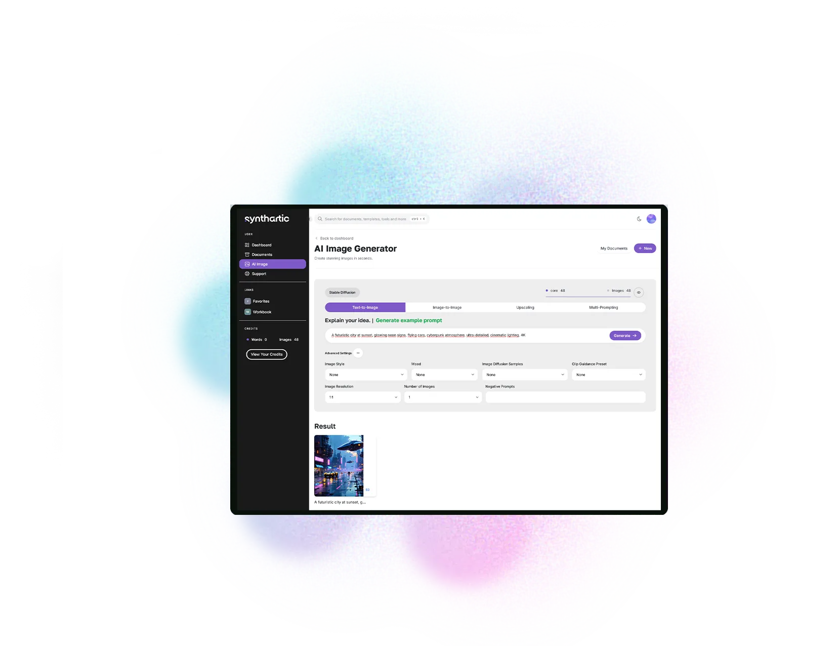 With Synthartic, anyone can create striking visuals, explore new ideas, and unlock their artistic side — all through the power of artificial intelligence.